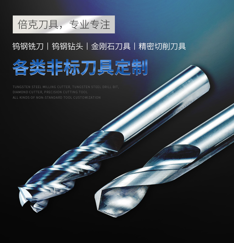 COMPANY PROFILE倍克工具是國(guó)內(nèi)數(shù)控刀具品牌,公司專(zhuān)注于生產(chǎn)定制各類(lèi)高品質(zhì)精密切削刀具,鎢鋼銑刀/鎢鋼鉆頭/金剛石刀具/CNC刀具/合金銑刀/數(shù)控刀具以及各類(lèi)非標(biāo)刀具研發(fā)制造。