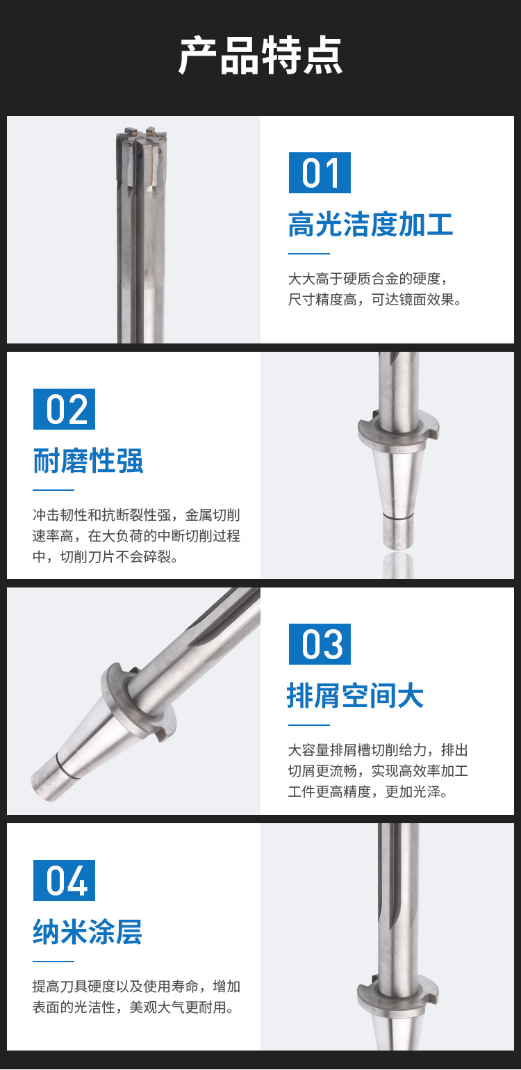 1.高光潔度加工:表面光潔無(wú)缺,刀刃更穩(wěn)固不容易崩裂減少換刀,提高效率;