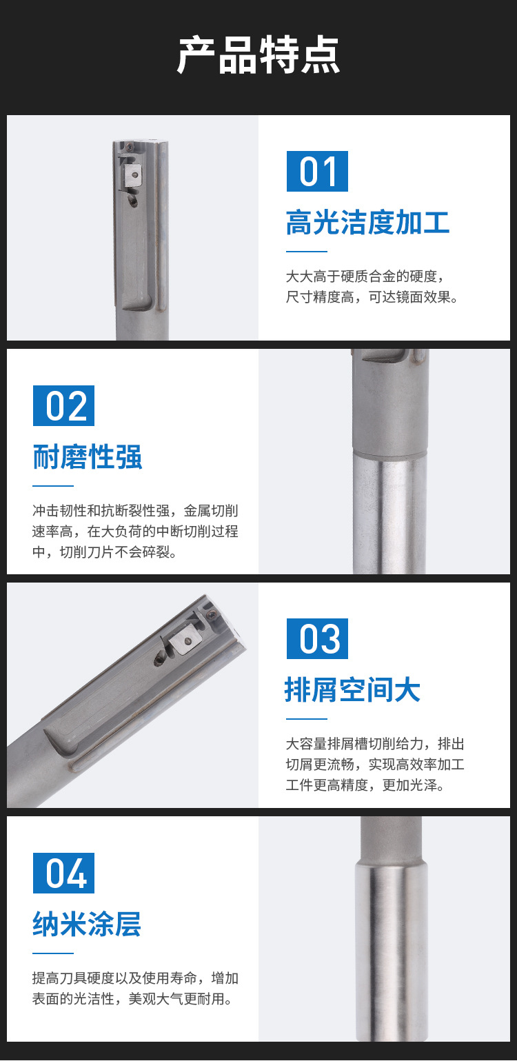 1.高光潔度加工:表面光潔無缺,刀刃更穩(wěn)固不容易崩裂減少換刀,提高效率;
