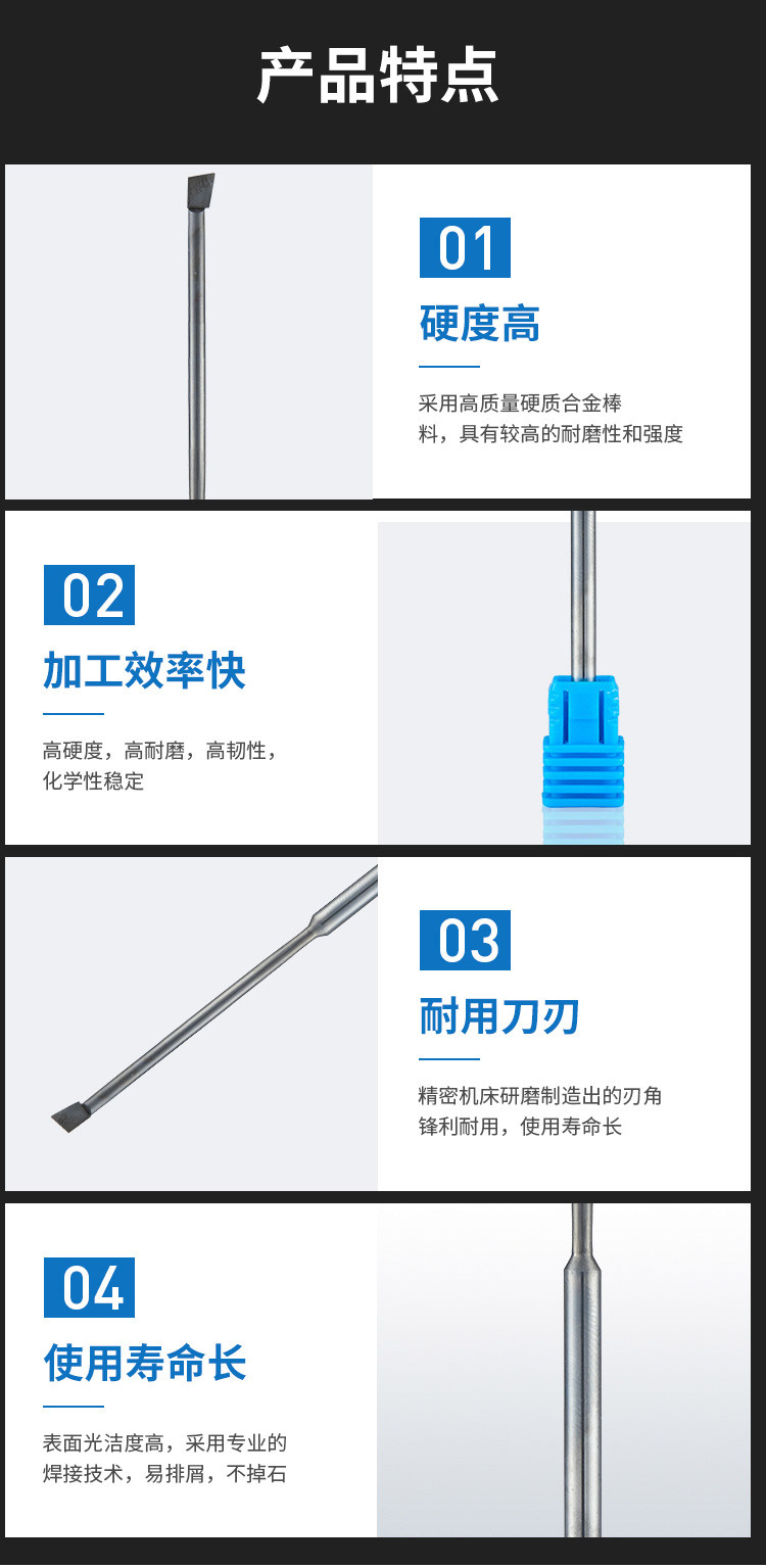 1.硬度高:采用高質(zhì)量硬質(zhì)合金棒料,具有較高的耐磨性和強(qiáng)度;