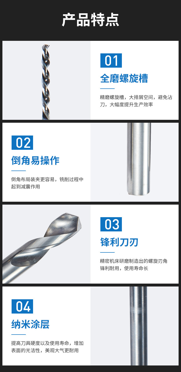 1.全磨螺旋槽:精磨螺旋槽,大排屑空間,避免沾刀,大幅度提升生產(chǎn)效率;