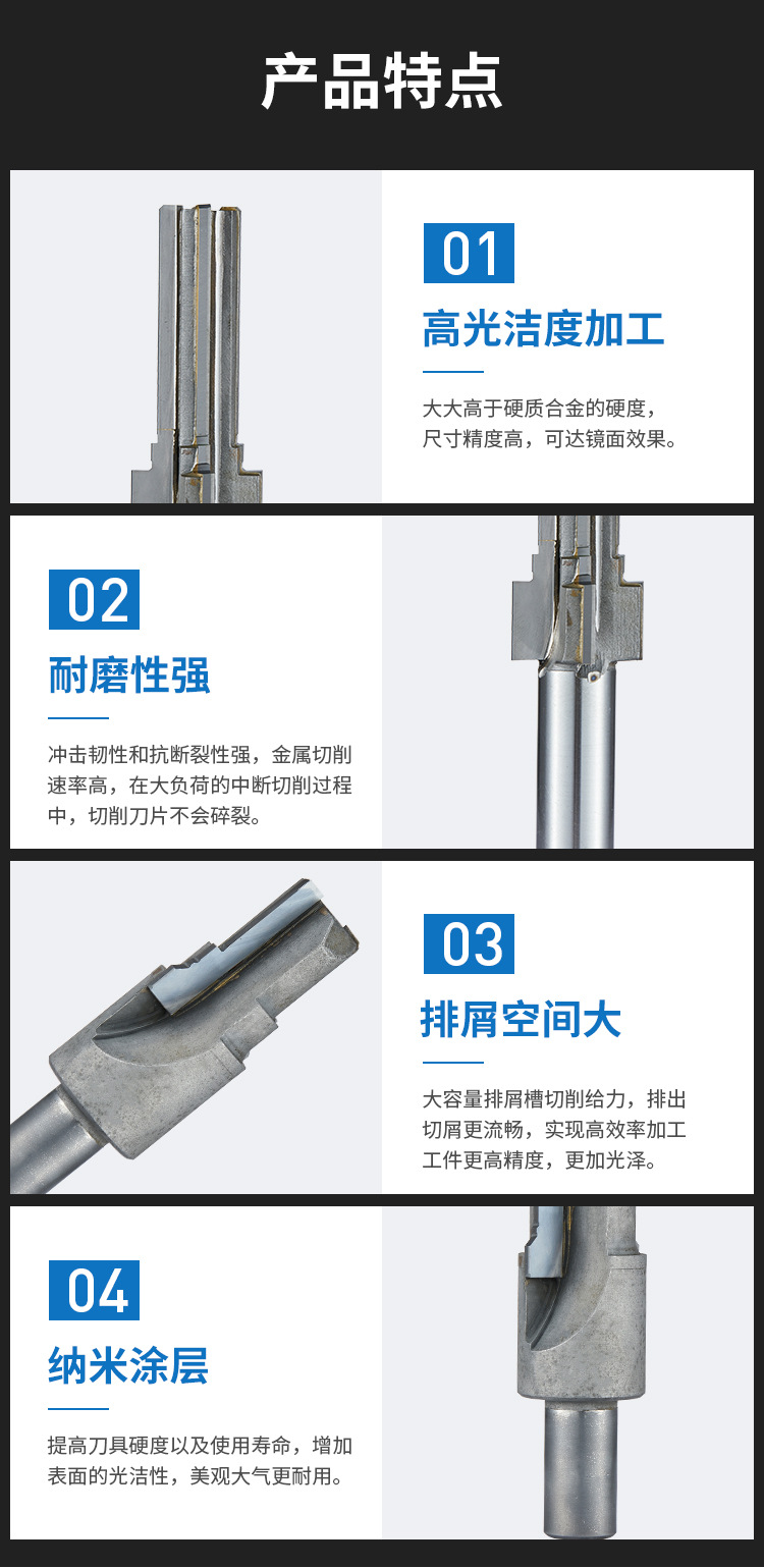1.高光潔度加工:表面光潔無缺,刀刃更穩(wěn)固不容易崩裂減少換刀,提高效率;
