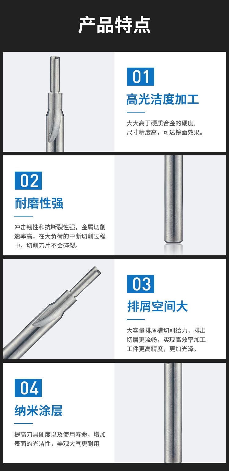 1.高光潔度加工:大大高于硬質(zhì)合金的硬度,尺寸精度高,可達鏡面效果;
