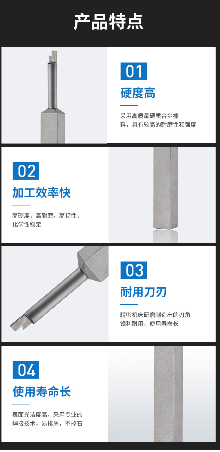 1.硬度高:采用高質(zhì)量硬質(zhì)合金棒料,具有較高的耐磨性和強(qiáng)度;
