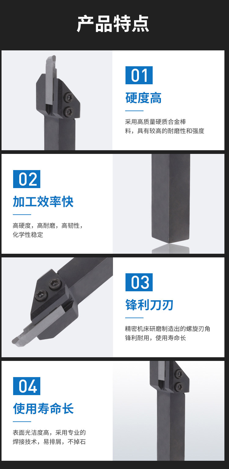 1.硬度高:采用高質(zhì)量硬質(zhì)合金棒料,具有較高的耐磨性和強(qiáng)度;