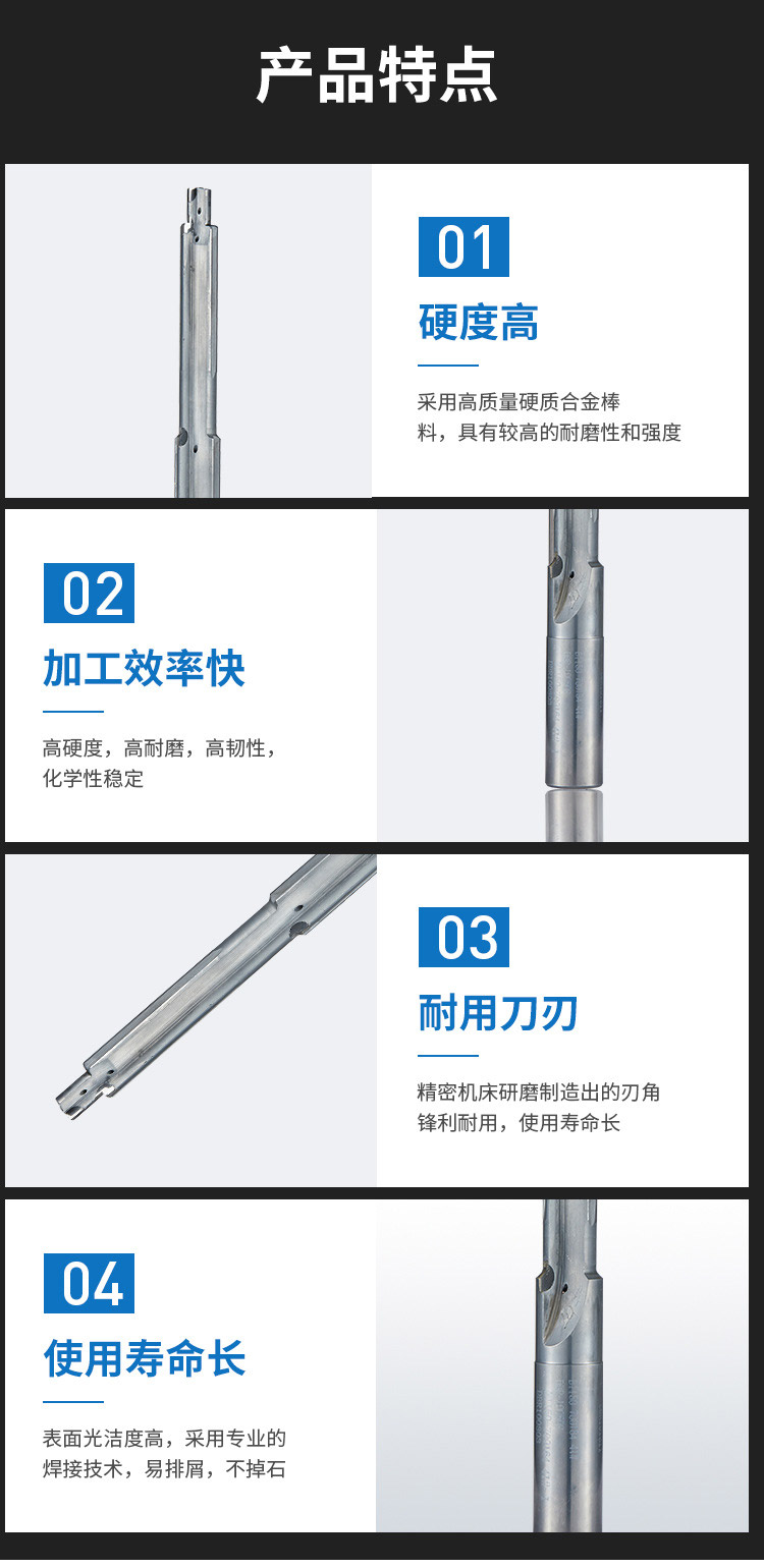 1.硬度高:采用高質(zhì)量硬質(zhì)合金棒料,具有較高的耐磨性和強度;